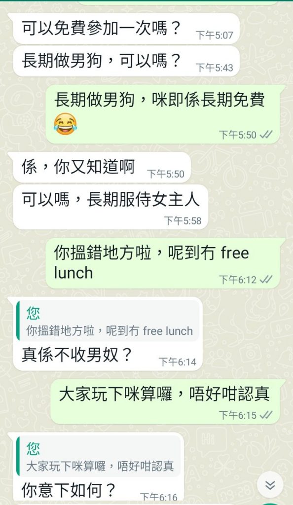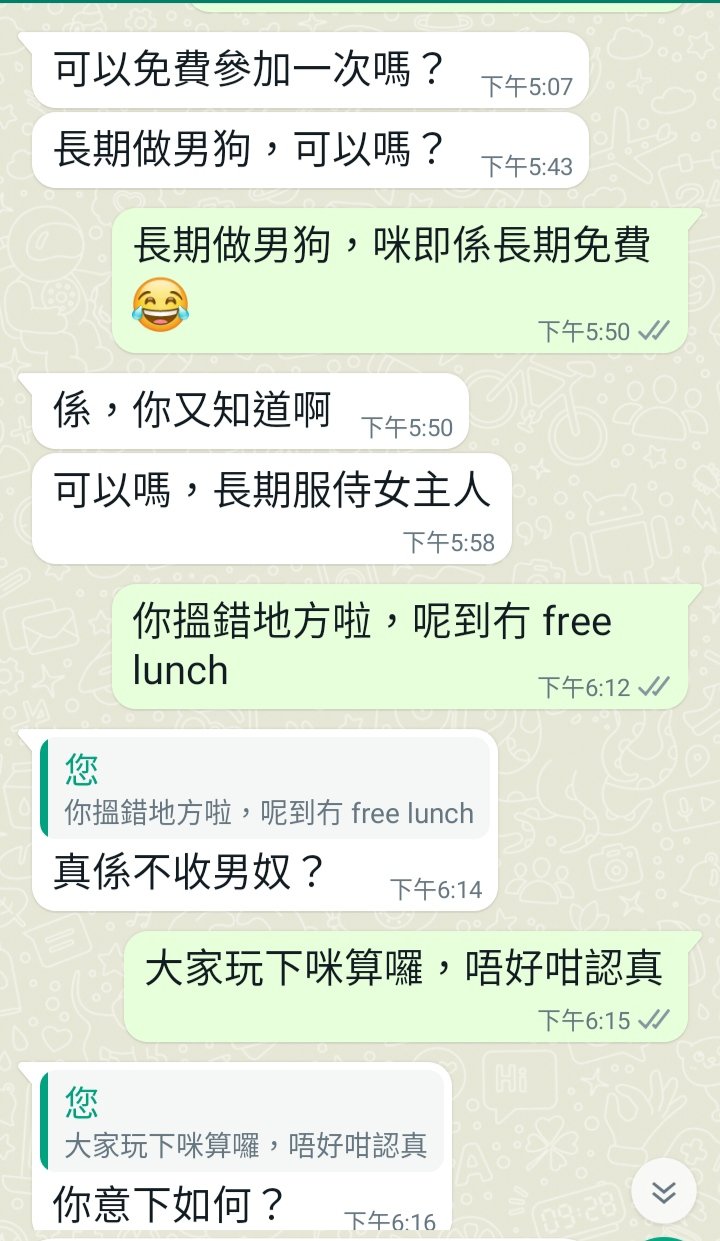 世上冇免費午餐 Posted on 2023-08-012023-09-20 by admin 男人,邊有咁易滿足吖,想免費一次喎,之後又話要長期,咁咪即係想永遠免費囉。不過知道唔得之後,呢隻野即時好冇品咁講出好多難聽嘅說話(呢到冇出比大家睇 )。想唔洗錢,都比啲耐性啦,唔通一開口,就 expect 我哋講好呀,好呀,等咗你開聲好耐啦,記住啦,免費嘅事先係最貴架。